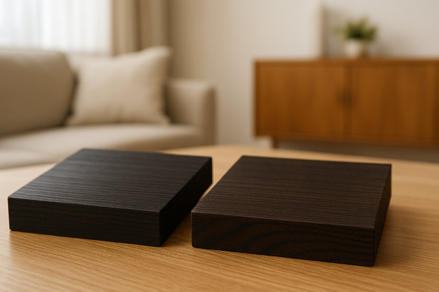 Per porte, infissi o pannelli, è possibile impiegare impregnanti trasparenti molto scuri o vernici alchidiche / poliuretaniche smaltate per ottenere un effetto scuro uniforme. In alcuni casi, si applica prima un mordente scuro e poi uno strato protettivo finale. Bisogna tenere presente che su superfici molto lisce o poco porose l’effetto può apparire piatto e monotono: è utile prevedere una finitura leggermente satinata o “soft touch” per evitare riflessi troppo forti.